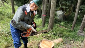 7月の活動日は6日(日)でした。 この日は3人で山に入り、作業目標はヒノキを1本倒すことでした。 倒すのは写真中央のヒノキです。手前に倒したいのですが、反対の方向にやや傾いていて、思っている方向に倒すのは難しそうです。 […] - せっせせっせと草刈り三昧