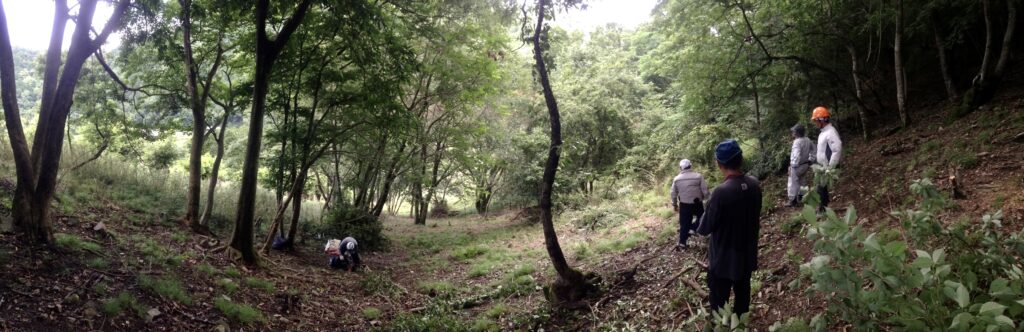 もともと里山はこうだったのですが、人の手が入らなくなって放置された結果、地面に陽が差さず樹木の生育に具合の悪い状況になってしまっています。