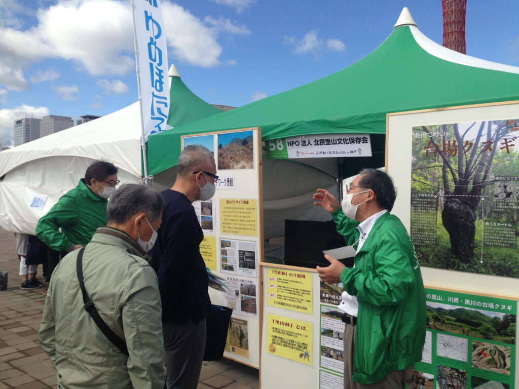 私たち保存会は、北摂の里山の貴重な自然環境を広くアピールすべく、パネルの展示やビデオの放映、チラシの配布などを積極的に行いました。