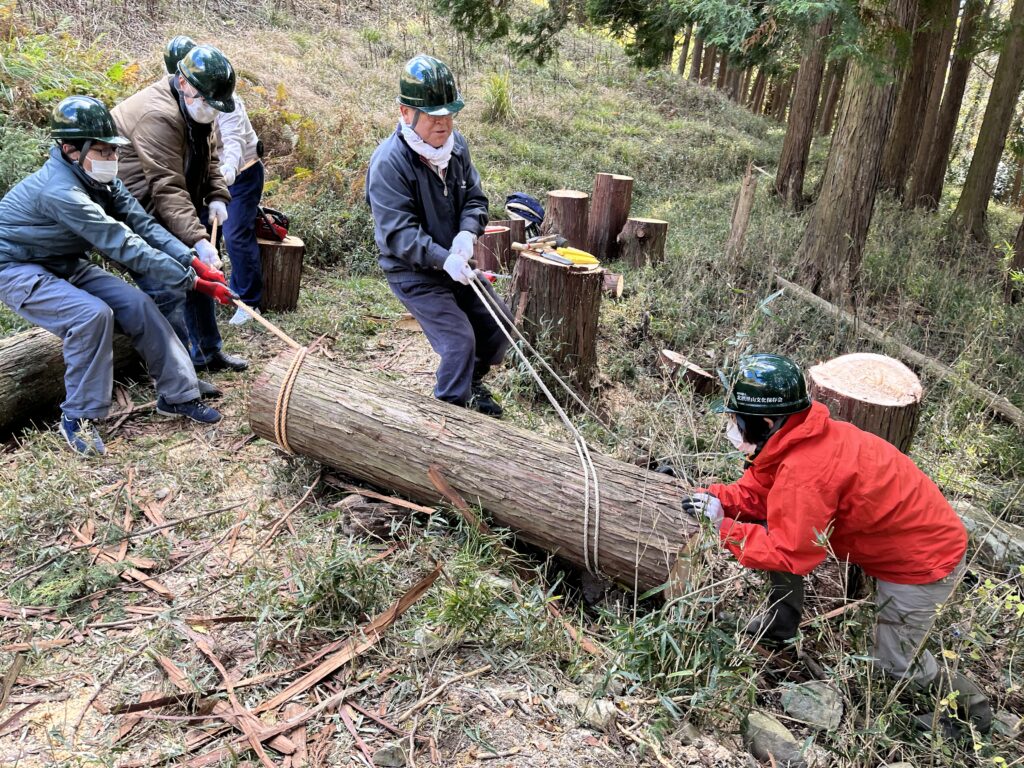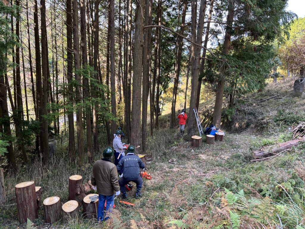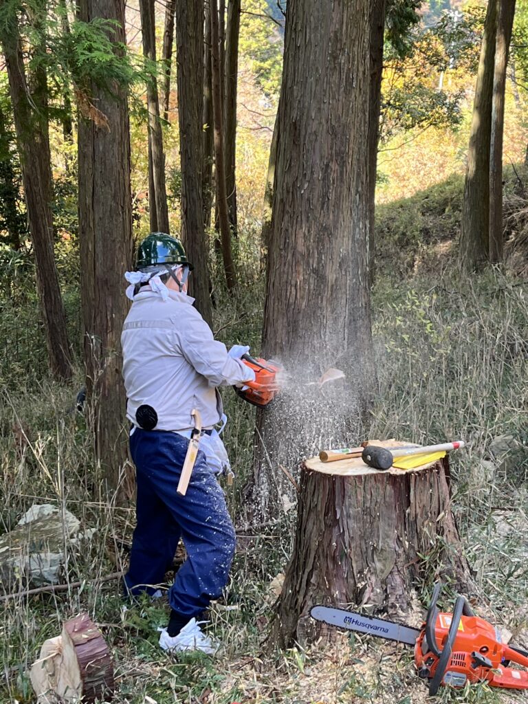 作業は前回に引き続き、台場クヌギの日当たりを遮っているヒノキを伐倒しました。