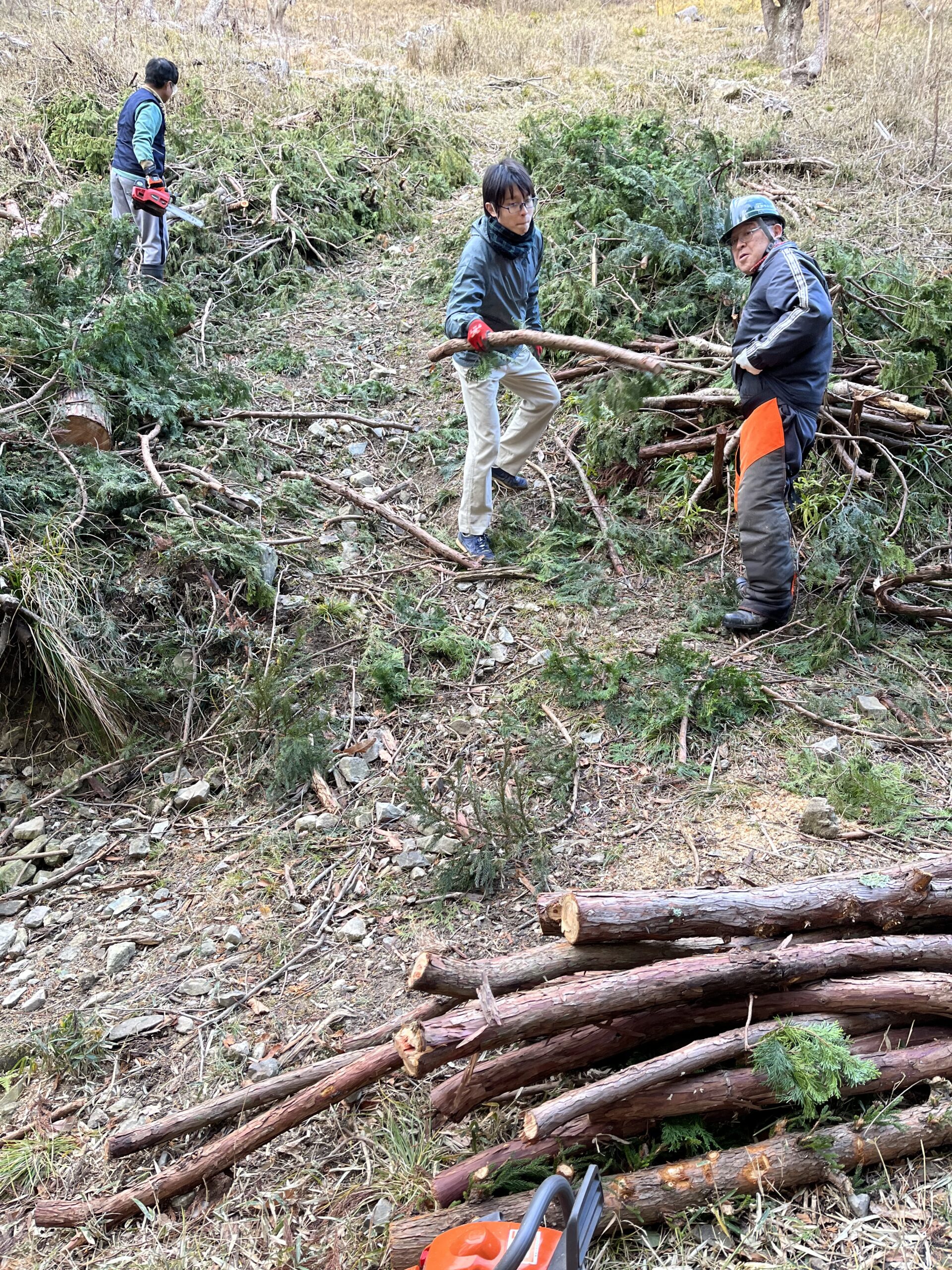 ミヤケくんが大学の学生グループで取り組んでいる里山整備で、道を歩きやすくするために枝を使いたいとのことです。