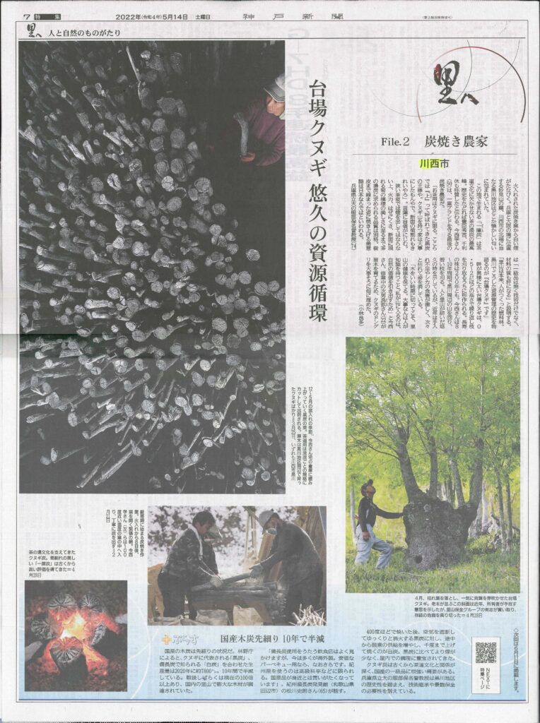 2022年5月25日 / 最終更新日時 : 2022年5月25日 rijichou 台場クヌギの森 黒川の炭焼きが新聞で紹介されました 5月14日付の神戸新聞で、川西・黒川の炭焼きが大きく取り上げられました。右下の台場クヌギの写真は、わたしたちが保全する「台場クヌギの森」で撮られたものです。 \ 最新情報をチェック / コメントを残す コメントをキャンセルメールアドレスが公開されることはありません。 ※ が付いている欄は必須項目ですコメント ※ 名前 ※ メール ※ サイト 次回のコメントで使用するためブラウザーに自分の名前、メールアドレス、サイトを保存する。 Δ