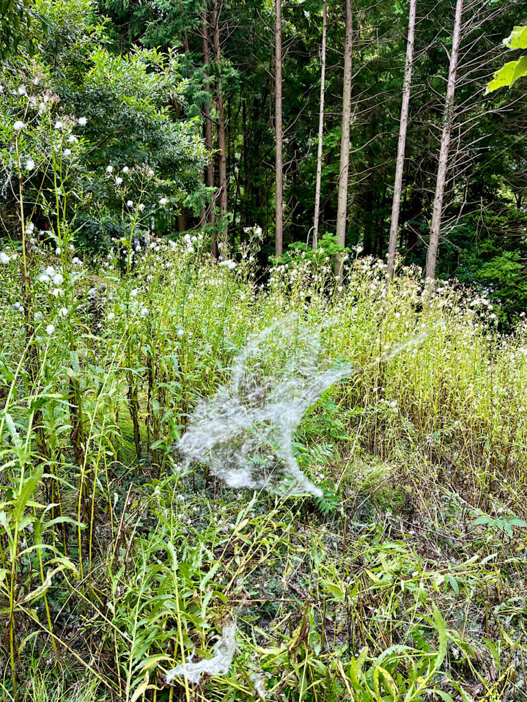 その綿のような花が風に吹かれて飛びまくるので、まるで里山全体が吹雪に包まれたようです。