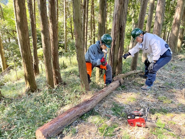 ミヤケ隊員はチェーンソー講習を受講して免許皆伝しました。