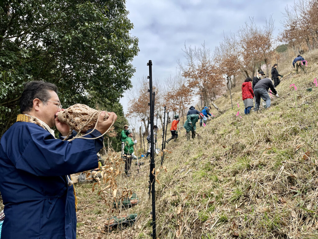 3月25日土曜日、クヌギの苗木を植える市民参加イベント「菊炭を守る森づくり」の当日を迎えました。