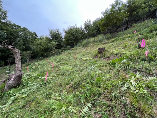 今年3月にクヌギの苗木50本を植えたエリア。