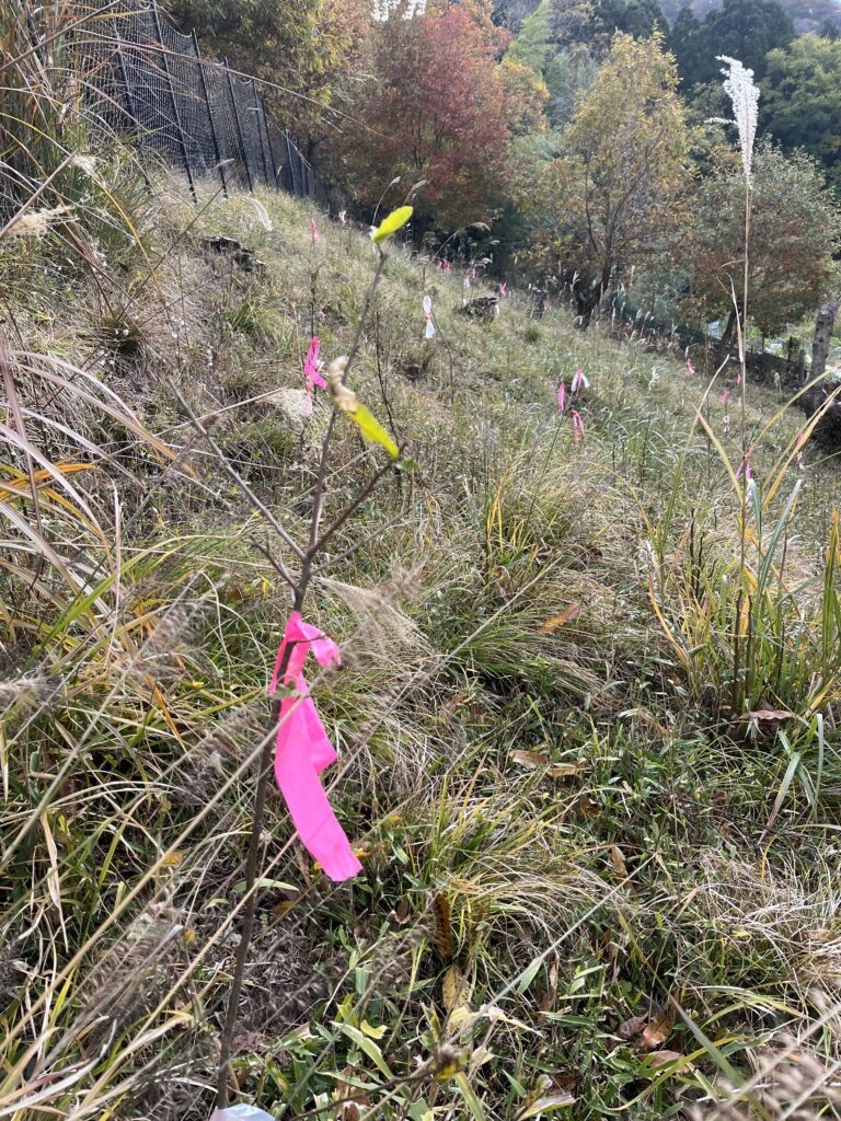 今年の春にクヌギの苗木50本を植えたエリアが鹿の攻撃を受けていました。