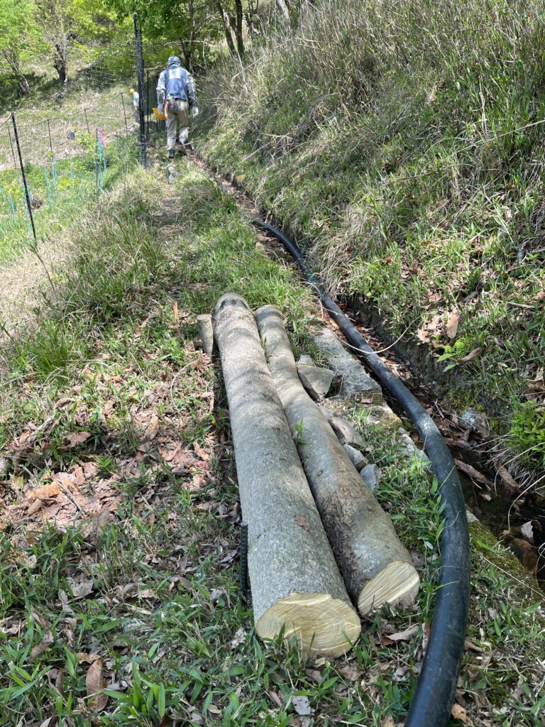 川西市内の小学校は4年生を対象に「里山体験学習」という行事をしているのですが、今年から台場クヌギの森も学習地のひとつとなり、川西里山クラブさんが子供たちを案内することになったので、歩きやすいように階段をつけたり、道端から落ちないように滑り止めの丸太を設置したりしました。