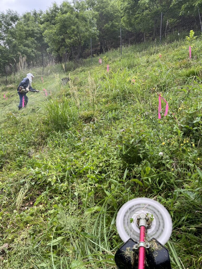 刈り払い機がフル回転で伸びた下草をガンガン刈り取ってくれます。