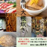 2023年11月26日 / 最終更新日時 : 2023年11月26日 rijichou お知らせ 12/10徳林寺で冬の風物詩「大根炊き」 福壽山徳林寺のWebサイト 「無病息災を願い、「黒川大根炊き」が黒川で初開催」(PR TIMES ※2022年の様子)